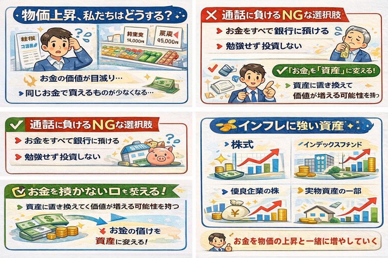 自分のお金を「物価の上昇と一緒に成長させる」ことが大切です。